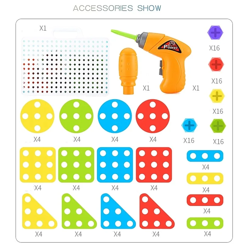3D Construction Sets for Kids Toy Drill Play Creative Educational Games Mosaic Design Building Toys Tool Set for Boy 3 Years Toy